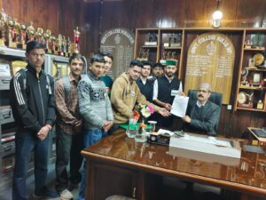 कुल्लू अपडेट, आज NSUI ज़िला उपाध्यक्ष सौरभ शर्मा के द्वारा कुल्लू महाविद्यालय के प्रधानाचार्य को ज्ञापन सौंपा गया जिसमे कॉलेज कि समस्याओं को रखा गया
