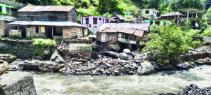 बाराहार पंचायत के लौट गांव में तीन घर गिरने की कगार पर भूस्खलन से कई मकान क्षतिग्रस्त, लोग रिश्तेदारों के घरों में शरण लेने को