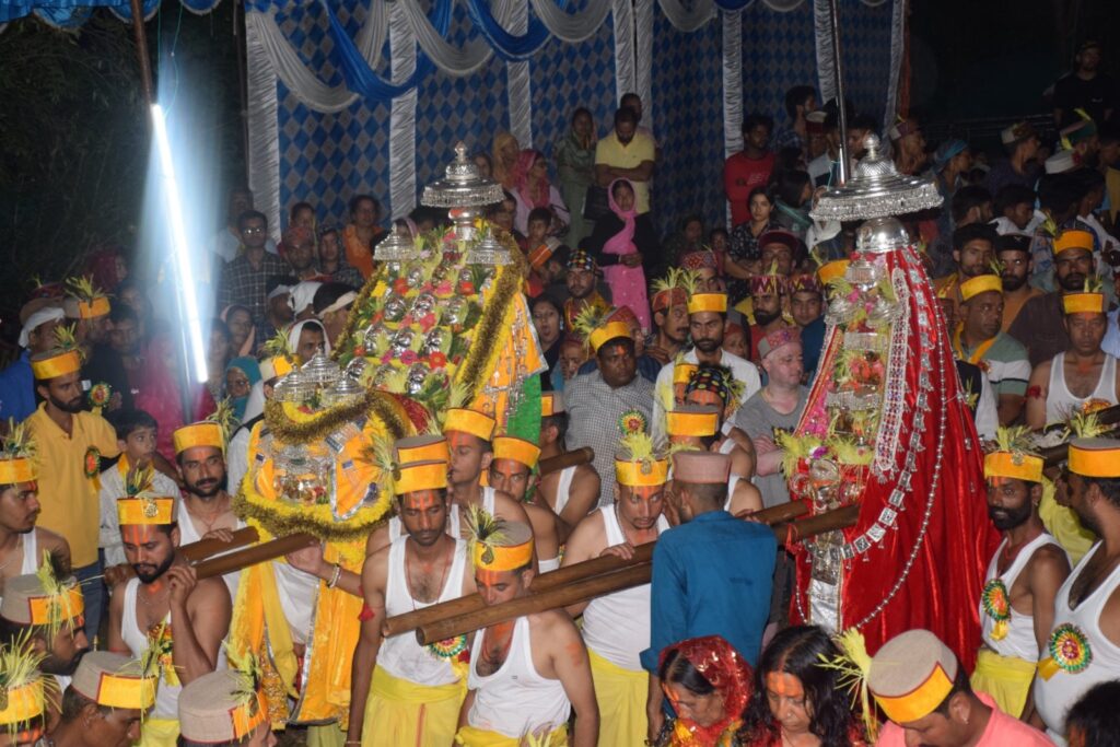 कुल्लू अपडेट,जिला कुल्लू के भुंतर स्थित पिपलागे में नैणा माता मंदिर में आज माता के जाग उत्सव का आयोजन किया जा रहा है।इस बार माता की जाग में माता भद्रकाली जी,माता शीतला जी,माता कोयला जी,माता नागरानी जी भी पधारी है। जाग में माता के गूरों और चेलियों का दहकते अंगारों पर नृत्य देखने के लिए लोग दूर दूर से आते हैं। हर साल की तरह इस बार भी सावन माह में भुंतर से सटे पीपलागे में माता नैना के मंदिर में जाग उत्सव धूमधाम से मनाया जाएगा। माता के गूर व चेलियां देव खेल आने पर दहकते अंगारों पर नृत्य कर देव शक्ति और आस्था का परिचय देते हैं।
