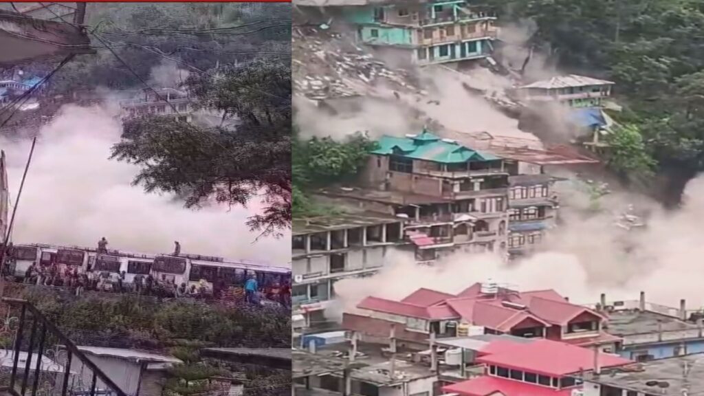 कुल्लू अपडेट,जिला कुल्लू के आनी बस स्टैंड के समीप आठ भवन जमींदोज हो गए हैं। हालांकि कोई जानी नुकसान नहीं है। गौर रहे कि एक सप्ताह पूर्व आनी के नए बस स्टेंड के साथ बने करीब चार भवन और उसके पीछे चार रिहायशी मकानों में दरारें आने के बाद प्रशासन द्वारा इन भवनों को अनसेफ घोषित किया गया था। प्रशासन ने सभी को मकान खाली करने के निर्देश दिए थे। मिली जानकारी के अनुसार सभी भवन खाली करवा दिए गए थे। वीरवार सुबह लगभग साढ़े नौ बजे ये सभी अनसेफ भवन जमींदोज हो गए।इनमे से दो भवनों में दो बैंक शाखाएं एसबीआई और कांगड़ा बैंक की चल रहीं थी। जबकि करीब 30 दुकानें भी थी।