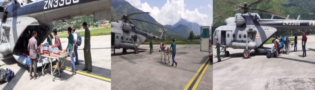 कुल्लू अपडेट,जिला के क्षेत्रीय अस्पताल कुल्लू से 4 गंभीर तौर बीमार मरीजों को भुंतर एयरपोर्ट से पीजीआई तक भारतीय वायुसेना के हेलीकॉप्टर द्वारा सफलतापूर्वक एयरलिफ्ट किया गया। हिमाचल प्रदेश के मुख़्यमंत्री सुखविंदर सिंह सुक्खू ने कहा कि आपात्कालीन स्थिति के दौरान त्वरित कार्रवाई से लोगों की जान बचती है। समन्वित प्रयासों के लिए आभारी हूं।
