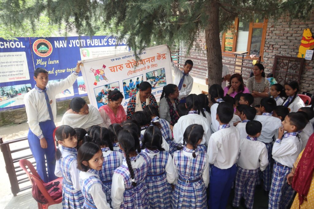 कुल्लू अपडेट, नवचेतना स्पेशल स्कूल कुल्लू और चारु फाउंडेशन के द्वारा दिव्यांग बच्चों को आत्मनिर्भर बनाने के लिए प्रोत्साहित किया जा रहा है जिसके तहत दिव्यांग बच्चों को राखियां तैयार करने के लिए सामान उपलब्ध करवाया गया था और अब दिव्यांग बच्चों के द्वारा राखियां बनाई गयी है | दिव्यांग बच्चो के द्वारा बनाई गयी राखियों को बेचने के लिए कारसेवा संस्था सहयोग कर रही है जिसके तहत संस्था के द्वारा जिला कुल्लू के सरकारी एवं निजी शिक्षण संस्थानों से संपर्क साधा जा रहा है और ये अभियान आज भी जारी रहा जिसमें संस्था द्वारा नवज्योति पब्लिक स्कूल ढालपुर में स्टाल लगाया गया इसमें कार सेवा दल की महिला विंग की सदस्यो ने भी सहयोग किया | आज लगभग 8000 रूपये से अधिक की राशि एकत्रित की गयी |