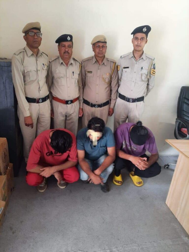 कुल्लू अपडेट ,दिनांक 25.08.2023 को पुलिस थाना कुल्लू के अंतर्गत आने वाली पुलिस चौकी ज़री में कुल्लू पुलिस की टीम ने पुलिस चौकी के समीप डूँखरा में नाकाबंदी के दौरान एक मोटरसाइकिल नम्बर HP 34C 2080 की नियमानुसार चैकिंग की तो सतपाल सिंह (34 वर्ष) पुत्र श्री इकबाल सिंह निवासी गांव व डाकघर ज़री तहसील भुंतर, जसप्रीत सिंह (22 वर्ष) पुत्र स्वर्गीय श्री सुखविन्द्र सिंह निवासी गांव बुलेवाला डाकघर ऊधनोबाल तहसील बालाचौर ज़िला SBS नगर पंजाब व गुरपाल सिंह (27 वर्ष) पुत्र श्री इकबाल सिंह निवासी गांव व डाकघर ज़री तहसील भुन्तर से 40 ग्राम चिट्ठा/ हिरोईन बरामद की गई है। तीनों आरोपियों के खिलाफ पुलिस थाना कुल्लू में मादक पदार्थ अधिनियम के तहत अभियोग दर्ज करके गिरफ्तार किया गया है। आरोपियों को कल माननीय अदालत में पेश करके पुलिस हिरासत रिमांड हासिल किया जाएगा।