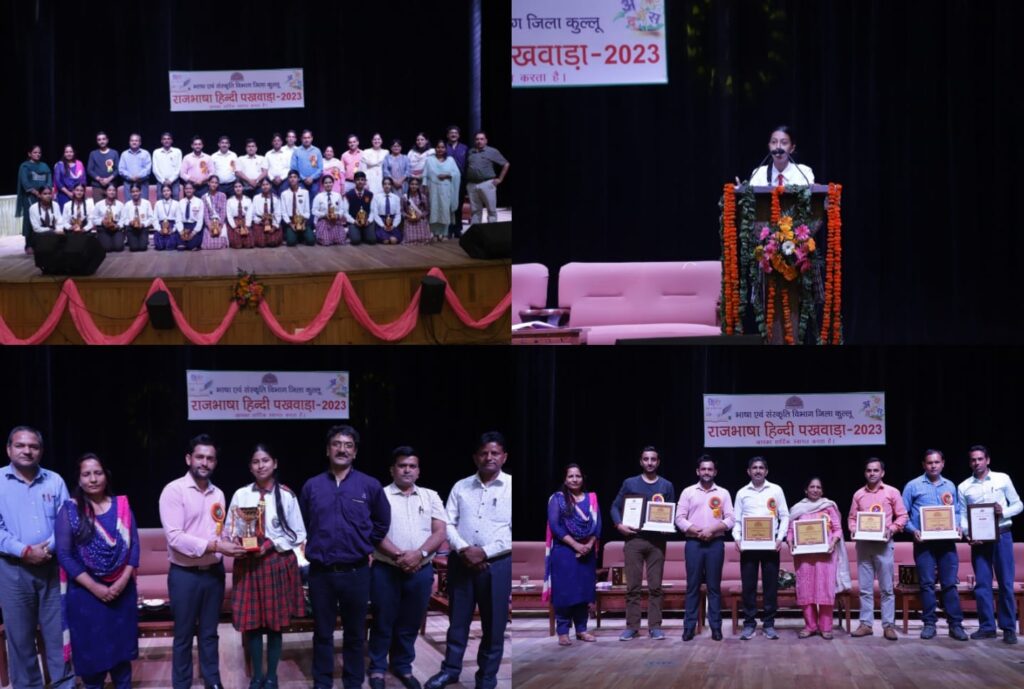 कुल्लू अपडेट,भाषा एवं संस्कृति विभाग कुल्लू द्वारा हिन्दी पखवाड़ा के उपलक्ष्य में अटल सदन, कुल्लू के अंतरंग सभागार में जिला कुल्लू के सरकारी व गैर सरकारी स्कूलों के विद्यार्थियों की भाषण, निबंध लेखन, प्रश्नोत्तरी प्रतियोगिताओं आयोजन व कुल्लू जिले में वर्ष भर हिन्दी में उत्कृष्ट कार्य करने के लिए विभागों को राजभाषा हिन्दी सम्मान 2023, से सम्मानित किया कार्यक्रम की अध्यक्षता जिला परिषद अध्यक्ष कुल्लू पंकज परमार ने की।