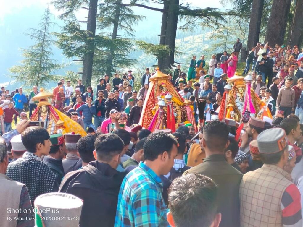 कुल्लू अपडेट,आनी – खण्ड आनी के सुप्रसिद्ध एंव ऐतिहासिक देवता भगवान वेदव्यास कुंईरी महादेव अपने तीन गढ सात हार के दौरे पर है बुधवार को व्यास ऋषि कुंईरी सिसरी मेले के अंतिम दिन लाव लश्कर सहित हजारों देवलों संग अपने मूल स्थान जलोडी गढ के शाठकी कैंद हार झरौणवी स्थित कैंद गांव पहुंचे । जंहा पर जगह जगह कूर भरकर धाम के साथ नाटियों का भव्य आयोजन किया गया । क्षेत्र के निवासी आशीष शर्मा ने जानकारी देते हुए बताया कि झरौणु स्तिथ मिथनु सौह में प्राचीन परंपरा को कायम रखते हुए 12 साल बाद दो दिवसीय मिथनु मेला धूमधाम से मनाया गया । मेले में भगवान वेदव्यास कुंईरी महादेव , महाकालेश्वर कोट भझारी समेत देवता चोतरू नाग जी शोधा ने शिरकत की। इस दौरान सभी देवों ने एक दूसरे को गले लगाकर मेल-जोल का भव्य नज़ारा प्रस्तुत किया। घने जंगलों के बीच प्राकृतिक छटा बिखेरता झरौणू स्तिथ मिथनु सौह स्थान सभी को अपनी ओर आकर्षित करता है । क्षेत्र के सैंकड़ों लोग ने मेले का लुत्फ़ उठाया । क्षेत्रवासियों ने कुल्लवी चोला कल्लगी व महिलाओं ने रंग-बिरंगी पटू में सजकर दोपहर बाद, एक सामूहिक विशाल नाटी का आयोजन किया गया । नाटी ने बेटी बचाओ, महिला सशक्तिकरण समेत आपसी भाईचारे का संदेश दिया । शाम के समय देव विदाई के समय सभी श्रदालु देव विदाई के इस पल पर भाव-विभोर हो उठे। इस दौरान सभी देवलू देवताओं संग खूब झूमे । उन्होंने नम आंखों से सभी देवताओं को विदाई दी और क्षेत्र की सुख-समृद्धि की कामना की ।
