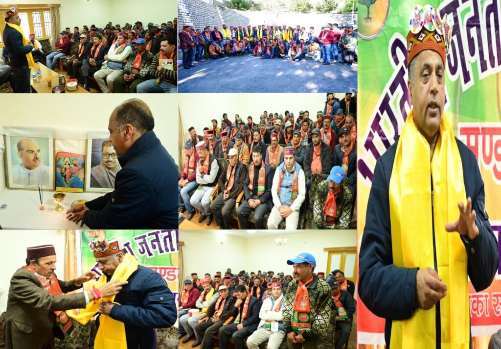 हिमाचल अपडेट , नेता प्रतिपक्ष ने आज जनजातीय ज़िला लाहौल-स्पीति का दौरा किया और वहाँ के स्थानीय लोगों के साथ-साथ पार्टी के नेताओं और कार्यकर्ताओं से मिले। इस दौरान उन्होंने कहा कि प्रदेश की सरकार हर मोर्चे पर फेल हो गई है। दस गारंटी झूठ बोलकर सत्ता आए और अब सारी गारंटिया सरकार में आते ही भूल गई। नेता प्रतिपक्ष ने कहा कि प्रदेश में विकास के सारे काम ठप पड़े हैं। हमारी सरकार में जहां हर क्षेत्र में विकास के काम हो रहे थे इस सरकार में सब कुछ ठप पड़ा है। हमारी सरकार में खोले गये ऑफ़िस बंद कर दिये गये। स्कूल-कॉलेज बंद कर दिये गये। उन्होंने कहा कि इस सरकार ने लाहौल-स्पीति के विकास को भी ठप कर दिया है। जयराम ठाकुर ने कहा कि लोकसभा के चुनाव में प्रदेश के लोग कांग्रेस सरकार के लोगों को जवाब देंगे। इस दौरान नेता प्रतिपक्ष जयराम ठाकुर ने केलांग बीजेपी मण्डल के पदाधिकारियों के साथ बैठक कर आगे भविष्य की कार्ययोजना पर चर्चा की और नवगठित कार्यकारिणी को शुभकामनाएं दी।