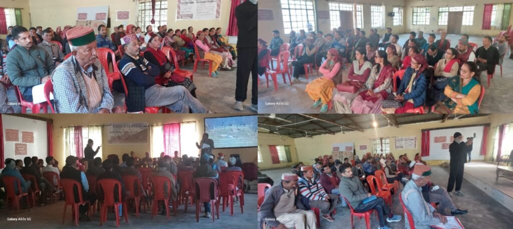 वीरवार को अम्बेडकर भवन बंजार में हिमालय नीति अभियान सहित विभिन्न संगठनों के पदाधिकारी ने स्थानीय ग्राम पंचायत के जनप्रतिनिधिओं और महिला मंडलों के साथ भोजन एवं जलवायु परिवर्तन विषय पर एक दिवसीय कार्यशाला का आयोजन किया गया। हिमालय नीति अभियान संस्था के राष्ट्रीय संयोजक गुमान सिंह ने जानकारी देते हुए बताया कि निर्यात- निर्देशित कृषि मॉडल के खिलाफ होते हुए संगठनों ने सरकारों से मांग की है कि उन्हें जलवायु परिवर्तन के बढ़ते प्रभावों के बावजूद आपसी असमानताओं के बीच खाद्य के अधिकार की सुरक्षा सुनिश्चित की जाए।