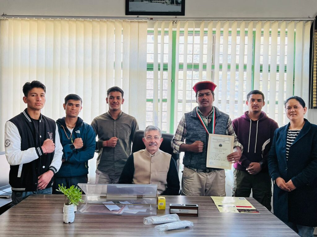 कुल्लू अपडेट,जवाहर लाल नेहरू राजकीय महाविद्यालय हरिपुर मनाली के छात्र आर्यन ने जोगिंदरनगर महाविद्यालय में आयोजित अंतर महाविद्यालय बॉक्सिंग (पुरुष) के 80-86 वेट केटेगरी में कांस्य पदक जीता।शारीरिक शिक्षा विभाग प्रमुख प्रो ज्योति बाला ने बताया कि फ़तेह चंद एवं विद्या देवी का बेटा आर्यन हरिपुर महाविद्यालय में बीए प्रथम वर्ष का छात्र है। हाल ही आयोजित अंतर महाविद्यालय बॉक्सिंग (पुरुष) प्रतियोगिता जो जोगिंदर नगर में आयोजित हुई उसने महाविद्यालय के 6 बॉक्सर ने भाग लिया था। सभी ने अच्छा प्रदर्शन किया। इसमें 80-86 भार वर्ग में आर्यन ने कांस्य पदक प्राप्त किया।
