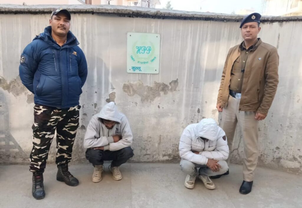 कुल्लू अपडेट , जिला कुल्लू में नशा माफियाओं के विरुद्ध कड़ी कार्यवाही करने के लिए पुलिस की टीम निरंतर जुटी हुई है। पुलिस द्वारा हर तरीके अपनाकर नशे की तस्करी पर रोक लगाई जा रही है। इसी के चलते पुलिस थाना भुंतर की टीम ने दो व्यक्तियों को 06.27 ग्राम चिट्टे के साथ गिरफ्तार किया है। पुलिस से मिली जानकारी के अनुसार पुलिस थाना भुंतर की टीम ने जिया फोर लेन पुल के समीप नाका लगाया हुआ था।नाकाबंदी के दौरान पुलिस को दो व्यक्तियों पर शक हुआ। शक के आधार पर जब उन दोनों व्यक्तियों की तलाशी ली गयी तो नवीन ठाकुर (23 वर्ष) पुत्र स्व0 हंसराज निवासी गाँव पनोल डाकघर वरसवान तहसील बल्ह जिला मण्डी तथा जीवन सिंह उर्फ सोनू मिंया (28 वर्ष) पुत्र केहर सिंह निवासी गांव कांगती डाकघर बबेली तहसील व जिला कुल्लू के कब्जा से 06.27 ग्राम चिट्टा/ हेरोइन बरामद किया गया । एसपी कुल्लू साक्षी वर्मा ने बताया कि दोनों आरोपियों के विरुद्ध पुलिस थाना भुंतर में मादक पदार्थ अधिनियम के तहत मामला दर्ज करके गिरफ्तार किया गया है।आरोपियों से पूछताछ जारी है। उन्होने बताया की आरोपियों को आज माननीय अदालत में पेश करके पुलिस हिरासत रिमांड हासिल किया जाएगा। आगे की कार्यवाही जारी है। उन्होने नशा माफियाओं को सख्त हिदायत दी है की वे लोग पुलिस की नजरों से बच नहीं पाएंगे। उन्होने आम जनता से भी सहयोग की अपील की है ताकि नशा तस्करों को जल्द से जल्द जेल की सलाखों के पीछे पहुंचाया जा सके। जानकारी देने वाले की पहचान गुप्त रखी जाएगी।