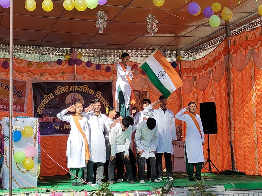 तेरी मिट्टी में मिल जांवा… देशभक्ति गीत की प्रस्तुति से भारतीय सेना के वीर जवानों को याद किया गया तथा शहीदों को श्रद्धांजली दी गई। वहीं सड़क सुरक्षा पर लघुनाटिका के माध्यम से यातायात के नियमों पर प्रकाश डाला। मुख्यातिथि फ़तेह सिंह ठाकुर ने विद्यालय की विभिन्न गतिविधियों की सराहना करते हुए कहा कि आज का विद्यार्थी देश का भविष्य है जिसे संवारना हम सभी का कर्तव्य है। उन्होंने कहा कि अध्यापकों के साथ-साथ माता पिता को भी अपने बच्चों के लिए समय-सारिणी निर्धारित करनी चाहिए। उन्होंने कहा कि आज समाज में नशे का बढ़ना चिंता का विषय है इसलिए सभी को इस विषय पर गंभीरता से विचार करना चाहिए। उन्होंने छात्र जीवन को मनुष्य का स्वर्णिम काल बताते हुए कहा कि हमें इसी काल से जीवन में आगे बढ़ने की प्रेरणा मिलती है तथा समाज और देश की तरक्की शिक्षा से संभव है। उन्होंने बच्चों का प्रोत्साहन करते हुए स्कूल को 11 हज़ार रुपए की राशि दी।