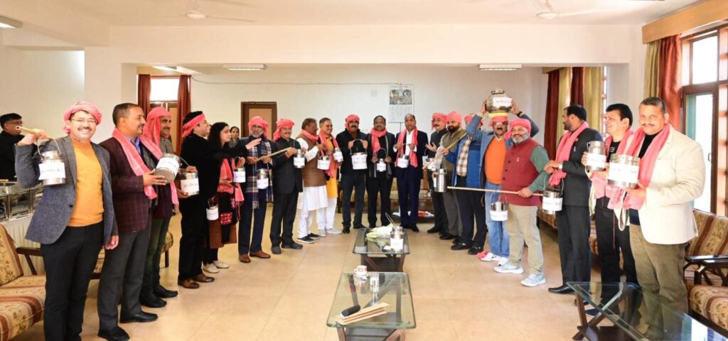 हिमाचल अपडेट , विधानसभा के शीतकालीन सत्र के तीसरे दिन वीरवार को भाजपा विधायकों ने कांग्रेस की चुनावी गारंटियों में गाय और भैंस का दूध खरीदने के मुद्दे को लेकर विधानसभा परिसर के बाहर प्रदर्शन किया। इस दौरान भाजपा के सभी विधायकों ने विधानसभा परिसर में दूध लेकर नारेबाजी की और कांग्रेस सरकार की झूठी गारंटी का विरोध किया। नेता प्रतिपक्ष जयराम ठाकुर ने कहा की कांग्रेस ने पशुपालकों/दुग्ध उत्पादकों को भी ठगा है।कांग्रेस सरकार को जनता से किए हर वायदे को पूरा करना होगा। गौर रहे की सरकार बनने से पहले कांग्रेस सरकार ने 10 गारंटिया दी थी जिसमें :-
