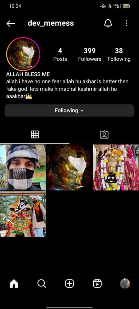 कुल्लू अपडेट,कुल्लू पुलिस की ओर से जानकारी दी गयी है कि 30 दिसम्बर को Instagram पर एक हिन्दू धर्म को आहत करने से सम्बन्धित पोस्ट डाली गई थी। इस पोस्ट के संदर्भ में थाना सदर कुल्लू में मामला धारा 295A भारतीय दण्ड़ संहिता के तहत दर्ज़ किया गया है तथा Instagram User के खिलाफ कानूनी कार्यवाही की जा रही है।एसपी कुल्लू साक्षी वर्मा ने जानकारी दी कि शीघ्र ही आरोपी को गिरफ्तार कर लिया जाएगा । यदि किसी को Instagram User के बारे में कोई जानकारी मिलती है तो थाना सदर कुल्लू के टेलिफोन नम्बर 01902222775 पर सूचित करें।