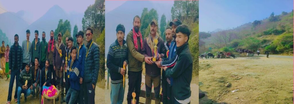 कुल्लू अपडेट ,जिला कुल्लू उपमंडल बंजार की तीर्थन घाटी गुशैनी में मकर संक्रांति के शुभ अवसर पर हंसपुरी युवक मण्डल मनहार द्वारा रविवार को कुलथी गांव में एक दिवसीय क्रिकेट प्रतियोगिता एवं अन्य खेलों का आयोजन किया गया। इस अवसर पर हिमालयन इको टूरिज्म सोसायटी के प्रघान केशव राम ठाकुर ने बतौर मुख्य अतिथि शिरकत की। हंसपुरी युवक मण्डल मनहार के प्रधान महेश कुमार शालू ने जानकारी देते हुए बताया कि हर वर्ष की भांति लोहड़ी और मकर संक्रांति पर्व के शुभ अवसर पर इस बार भी कुलथी गांव में स्थानीय युवाओं के लिए एक दिवसीय खेलों का आयोजन किया गया है जिसमें क्रिकेट प्रतियोगिता मुख्य आकर्षण रहा। इन्होंने बताया कि इस बार क्रिकेट प्रतियोगिता में आसपास के गांव से स्थानीय युवकों की छह टीमों ने भाग लिया है। इस प्रतियोगिता का का फाइनल मैच हंसपुरी युवक मण्डल मनहार और लक्ष्मी नारायण युवक मण्डल फरयाडी के बीच हुआ जिसमें फरयाडी की टीम विजेता और मनहार की टीम उप विजेता रही है। इस कार्यक्रम के मुख्य अतिथि केशव ठाकुर द्वारा सभी उपस्थित लोगों को मकर सक्रांति की बधाई दी गई और युवाओं से खेल को खेल की भावना से खेलने के लिए प्रेरित किया। इन्होंने कहा कि खेलने से शरीर तो स्वस्थ रहता ही है और आपस में भाईचारा भी बढ़ता है। इसलिए युवाओं को पढ़ाई के साथ-साथ थोड़ा समय खेलों को भी देना चाहिए। पहाड़ों की ढलान में बने इस छोटे से खेल मैदान में भी क्रिक्रेट प्रतियोगिता करवाने के लिए इन्होंने अयोजन कमेटी की सराहना की है और अगले साल से इससे भी अच्छा आयोजन हो, इसके लिए हमेशा सहयोग देने का आश्वासन दिया है। इन्होंने अपनी तरफ से आयोजकों के लिए दो हजार रुपए देने की भी घोषणा की है। मुख्य अतिथि द्वारा इस प्रतियोगिता की विजेता और उप विजेता टीम के खिलाड़ियों को ट्रॉफी और मेडल देकर सम्मानित किया गया। इस अवसर पर वार्ड सदस्य प्रताप सिंह, योग राज नेगी, बेद राम, संजु नेगी, प्रेम सिंह, दुनी चन्द, डोला राम भारती, धनी राम, प्यार सिंह व गांव के अन्य गणमान्य लोग तथा युवक और महिला मंडल के सदस्य मौजूद रहे।