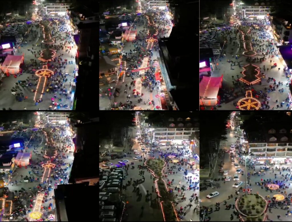 कुल्लू अपडेट ,अयोध्या में श्रीराम मंदिर की प्राण प्रतिष्ठा के शुभ अवसर पर मनाली में सोमवार को धूमधाम के साथ दीपोत्सव मनाया गया। सायंकाल में मनाली का मालरोड दीयों की रोशनी से जगमगा उठा। यहां 11,000 दीये प्रज्वलित किए गए। इससे पूरा वातावरण भक्तिमय हो गया।रामबाग चौक से दीयों को प्रज्वलित करने का सिलसिला शुरू हुआ। शाम छह बजे के बाद दीप प्रज्वलित करने शुरू हुए। ओम, स्वास्तिक और जय श्रीराम के आकार में रखे गए दीयों को प्रज्वलित किया गया तो माहौल श्रीराम भक्ति के रंग में रंग गया। महिलाओं, पुरुषों और पर्यटकों में दीयों को प्रज्वलित करने का भारी उत्साह देखा गया।दीयों के साथ पर्यटकों ने खूब सेल्फियां लीं। ग्रामीण इलाकों से आई महिलाओं ने भी दीपोत्सव के बाद जगमगाते दीयों के साथ सेल्फियां लीं। मालरोड में ढोल नगाड़ों की धुन पर पर्यटकों ने खूब डांस किया