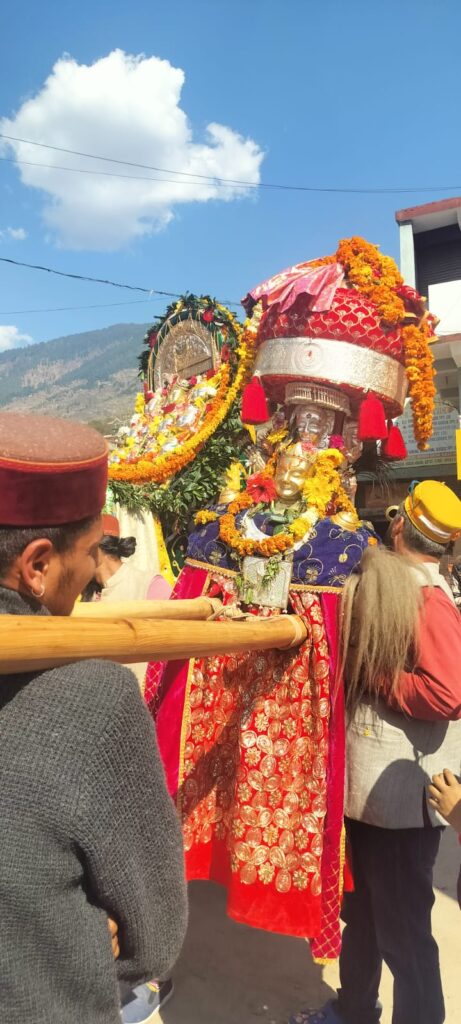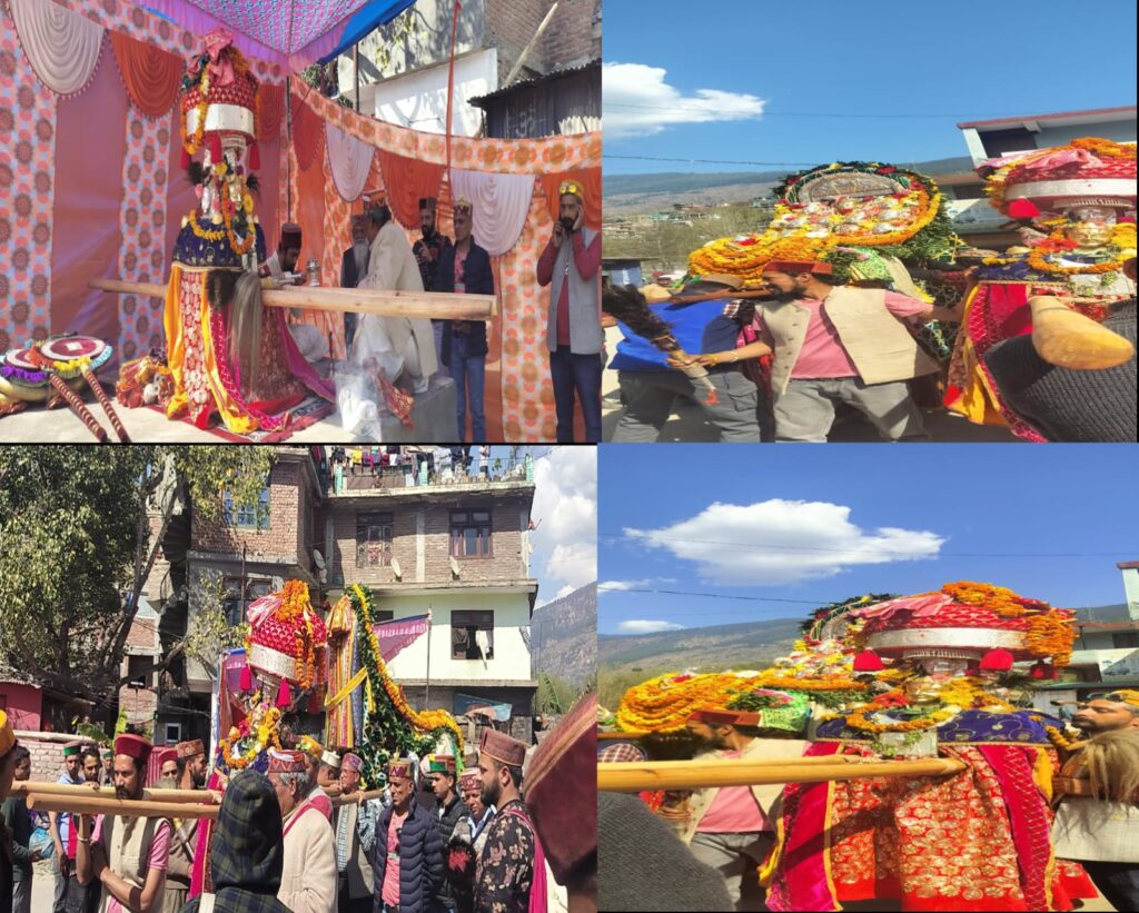 कुल्लू अपडेट , जिला मुख्यालय कुल्लू के अखाड़ा बाजार में आयोजित किए जाने वाले पारंपरिक फाग मेले का आगाज हो गया है। यह मेला देवता ध्रुव ऋषि के सम्मान में मनाया जाता है। मेले के प्रथम दिन देवता ध्रुव ऋषि और देवता चंद्रमोली संगम महादेव लाव लश्कर के साथ मेला ग्राउंड में पधारे। यहां पर देव मिलन हुआ और उसके बाद देउली हुई और अंत में देवताओं द्वारा देव नृत्य किया गया। कल 300 महिलाएं महानाटी में भाग लेंगी। महिलाएं पारंपरिक परिधान में सजकर नाटी डालेंगी। । कल महानाटी का आयोजन किया जाएगा। ध्रुव ऋषि के कारदार कार्तिक चौधरी ने कहा कि मेले की सांस्कृतिक विरासत को बनाए रखने के लिए मेले का आयोजन किया जाता है । कल देवता ध्रुव ऋषि रामशिला स्थित हनुमान मंदिर से लेकर मेला स्थल तक परिक्रमा करेंगे। इसमें लोग देवता का दर्शन कर आशीर्वाद लेंगे। मेला कमेटी के प्रधान विशाल सूद ने बताया की शाम को भजन संध्या का आयोजन किया जाएगा जिसमें इस्कॉन और पंडित खुशबू भारद्वाज प्रस्तुति देंगे। उन्होने कहा की कल 300 महिलाएं महानाटी में भाग लेंगी। इसके साथ साथ देवता ध्रुव ऋषि रामशिला स्थित हनुमान मंदिर से लेकर मेला स्थल तक परिक्रमा करेंगे। उन्होने समस्त कुल्लू वासियो को फाग मेले की शुभकामनाएं दी।