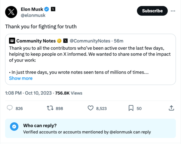 क्या है एक्स का कम्युनिटी नोट्स :- एक्स के हेल्प सेंटर पर दी गई जानकारी के मुताबिक कम्युनिटी नोट्स एक ऐसा टूल है जो एक्स प्लेटफॉर्म पर किसी सूचना के सही होने का प्रमाण देता है। यदि कोई सूचना किसी को गलत या गुमराह करने वाली लगती है तो कोई भी वहां पर एक कॉन्टेक्स्ट एड कर सकेगा, ऐसे में अन्य लोगों को उसके बारे में जानकारी मिल जाएगी कि वह सूचना सही या गलत। यह ठीक उसी तरह काम करेगा जैसे आप व्हेयर इज माय ट्रेन एप में ट्रेन के प्लेटफॉर्म के बारे में जानकारी एडिट करते हैं।