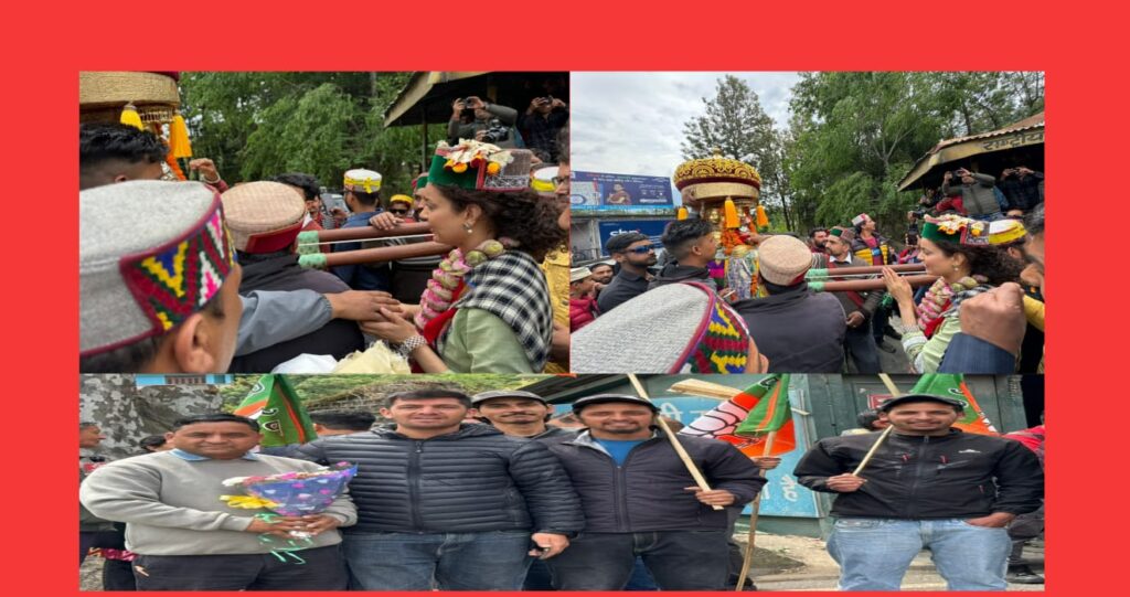 कुल्लू अपडेट,मंडी लोकसभा क्षेत्र से भाजपा प्रत्याशी कंगना रनौत ने पहली बार बतौर भाजपा प्रत्याशी जिला कुल्लू के प्रवेश द्वार बजौरा पहुंची और यहाँ बंजार के विधायक सुरेंद्र शौरी,पूर्व में कुल्लू विधानसभा से भाजपा प्रत्याशी नरोत्तम ठाकुर एवं भाजपा कुल्लू मंडल,भाजपा बंजार मंडल, भाजपा मनाली मंडल के पदाधिकारी,कार्यकर्ताओं ने स्वागत किया।वही यहॉं से देवता सप्तऋषि जी भी हारियानों सहित देव कार्यक्रम के लिए जा रहे थे और यहाँ कंगना रनौत ने देवता का आशीर्वाद लिया और खास बात यह रही कि कंगना ने आज लोगो से पारम्परिक और सांस्कृतिक तौर पर जुड़ने के लिए कुल्लूवी पट्टू और किन्नौरी टोपी पहनी है।