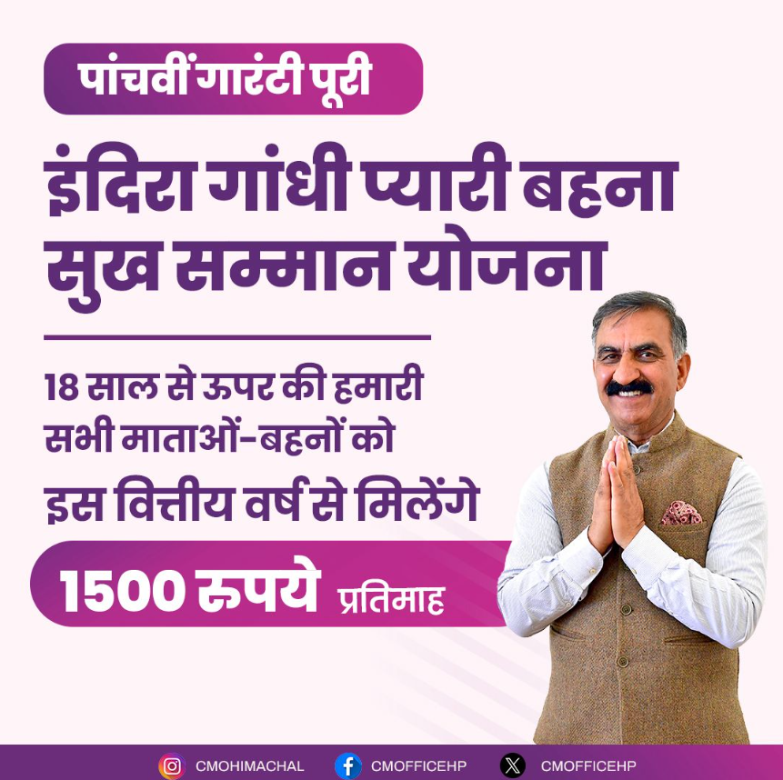 हिमाचल न्यूज ,महिलाओं को 1500 रुपये की महिला सम्मान निधि पर सीएम सुखविंद्र सिंह सुक्खू का बड़ा बयान आया है। सीएम ने कहा कि पात्र महिलाओं को सम्मान निधि मिलेगी। महिलाएं तहसील वेलफेयर ऑफिस में जाकर फॉर्म जमा कर सकती हैं। इस संबंध में चुनाव आयोग ने हमारी आधी बात मानी है। वहीं, राजीव भवन शिमला में मंडी संसदीय क्षेत्र की बैठक शुरू हो गई है। सीएम ने कहा कि मंडी संसदीय क्षेत्र के पदाधिकारियों से फीडबैक लिया जाएगा। फीडबैक के आधार पर चुनावी रणनीति बनाई जाएगी। बैठक में प्रतिभा सिंह, विक्रमादित्य सिंह, कैबिनेट मंत्री जगत सिंह नेगी, सीपीएस सुंदर सिंह ठाकुर, कौल सिंह ठाकुर, वित्तायोग के चेयरमैन नंद लाल, विधायक चंद्रशेखर, भुवनेश्वर गौड़, मंडी संसदीय क्षेत्र के पर्यवेक्षक संजय दत्त बैठक में मौजूद रहे।