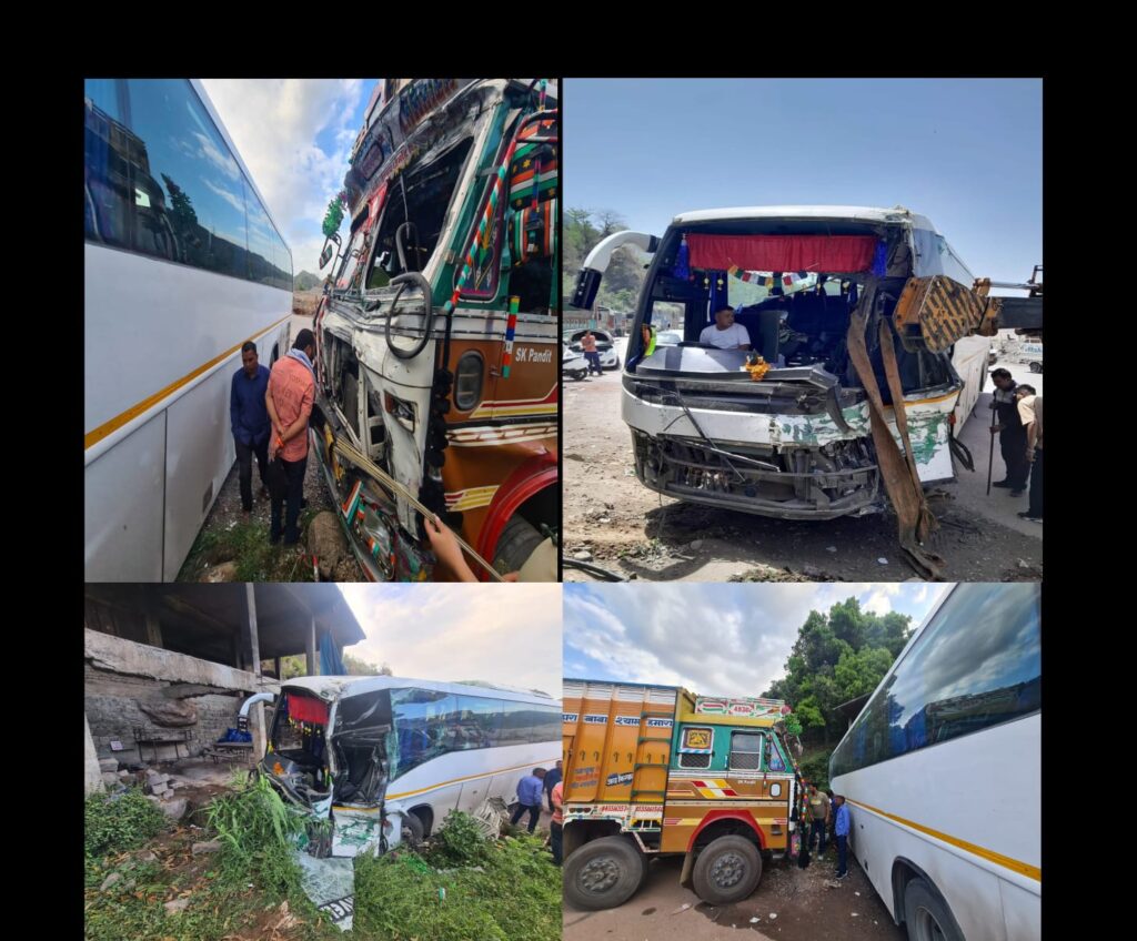 हिमाचल अपडेट,हिमाचल प्रदेश की सड़कों पर हादसों का दौर जारी है और लगातार मामलों में इजाफा होता जा रहा है ताजा मामले में सड़कों पर घूम रहे बेसहारा पशुओं को बचाने के चक्कर में एक वोल्वो बस ट्रक के साथ जा टकाराई जिस कारण वोल्वो बस में सवार आधा दर्जन से अधिक सवारियों को चोटें आई हैं वहीं इस हादसे में वोल्वो बस चालक सहित ट्रक चालक भी गंभीर रूप से घायल हुआ हैं। और घायलों को इलाज के लिए अस्पताल में भर्ती करवाया गया है। हादसे के कारण बस का अगला हिस्सा पूरी तरह से चकनाचूर हो गया है।
