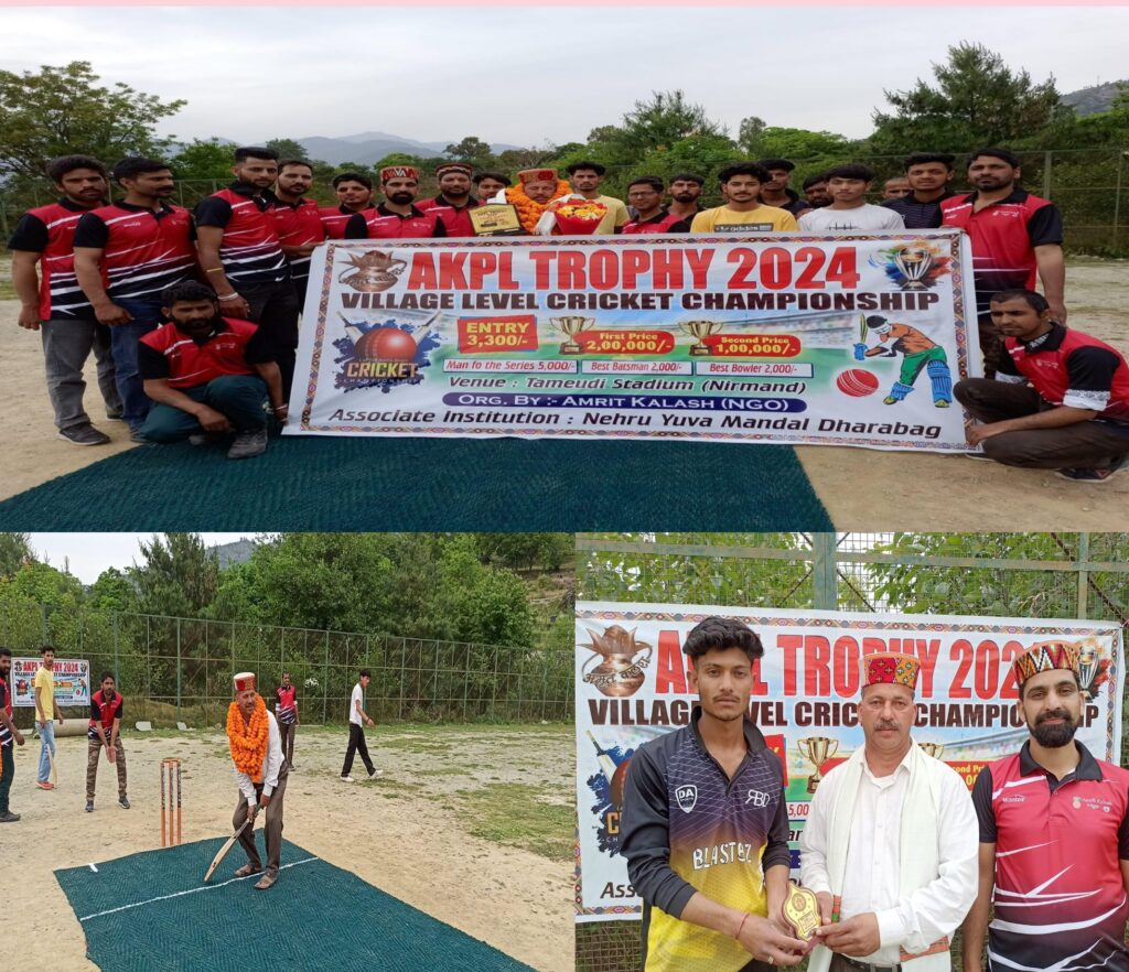 कुल्लू अपडेट , खेल परिसर निरमंड में आज से क्रिकेट के सबसे बड़े महाकुंभ अमृत कलश प्रीमियम लीग ट्रॉफी 2024 सीज़न 1 का आगाज़ आज से शुरू हो गया है। अमृत कलश प्रीमियम लीग ट्रॉफी 2024 सीजन 1 के शुभारंभ में भूपेंद्र ठाकुर सुवा सेवा एवम खेल विभाग कुल्लू ,ग्राउंड मैन खेल परिसर निरमंड बतौर मुख्य अतिथि शरीक हुए और मुख्य अतिथि के कर कमलों द्वारा टूर्नामेंट का आगाज़ किया गया।हिमाचल के ग्रामीण स्तर के क्रिकेट इतिहास में पहली बार किसी (एनजीओ) द्वारा ग्रामीण स्तर का इतना बड़ा इवेंट मैनेजमेंट करने जा रही है। जिसमें हिमाचल प्रदेश के कौने कौन से यहां ग्रामीण स्तर की लगभग 150 टीमों हिस्सा लेंगी। अमृत कलश एनजीओ के अध्यक्ष मुकेश मैहरा ने बताया कि इन 150 से अधिक टीमों के चैंपियन के लिए लंबा इंतजार नहीं करना पड़ेगा। इसके लिए अमृत कलश एनजीओ के आयोजकों ने टूर्नामेंट को निरमंड और आनी की टीमों के लिए खेल परिसर निरमंड, ढाका स्टेडियम छन्नी नाला बंजार, कृष्णा स्टेडियम बजौरा कुल्लू,में खेलेगी। इन तीन स्टेडियम में आयोजित होने वाली अमृत कलश प्रीमियम लीग के सुपर 8 , सेमीफाइनल, और ग्रैंड फिनाले के मुकाबले खेल परिसर निरमंड में खेले जायेंगे। 3300 के प्रवेश शुल्क के साथ 2 लाख की बड़ी राशि जितने इस मौका मिलेगा। उपविजेता टीम को 1 लाख की नगद पुरस्कार और ट्रॉफी के साथ सम्मानित किया जाएगा।