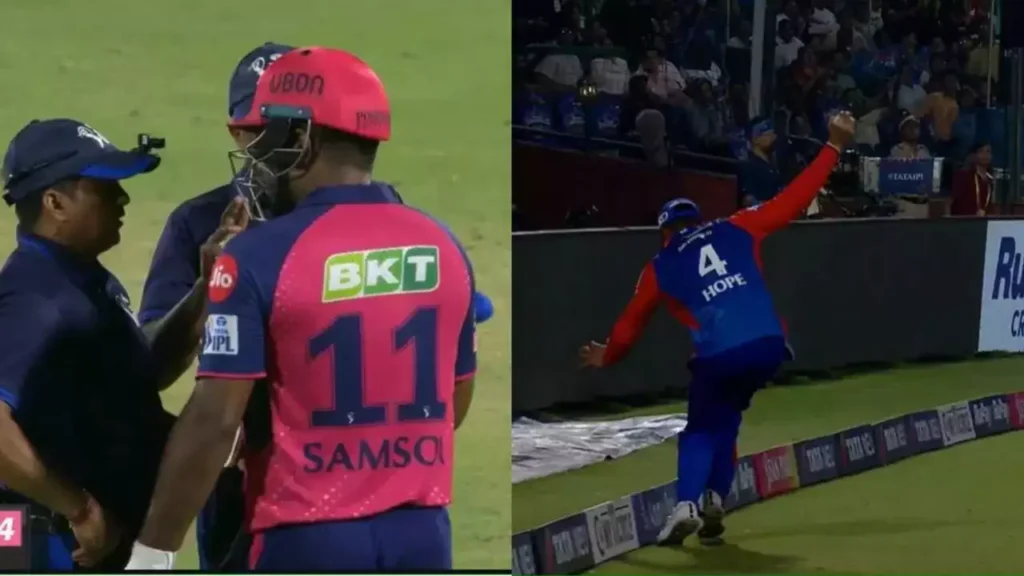 क्या था मामला:- दरअसल, यह घटना लक्ष्य का पीछा कर रही राजस्थान रॉयल्स की पारी के 16वें ओवर में घटी। दिल्ली के गेंदबाज मुकेश कुमार की गेंद पर संजू सैमसन ने जोरदार शॉट मारा, गेंद सीधे छक्के के लिए जा रही थी लेकिन बाउंड्री पर तैनात शाई होप ने उनका कैच लपक लिया। इस दौरान उन्हें खुद को बाउंड्री छूने से बचाते देखा गया। इस करीबी मामले के बावजूद अंपायर ने बिना समय गंवाए आउट दे दिया। संजू भी डगआउट की तरफ जाने लगे। इस दौरान रीप्ले में उनके कैच आउट का वीडियो चला जिसके बाद विकेटकीपर बल्लेबाज अंपायर से बात करने के लिए पहुंचे। इस मैच में राजस्थान के कप्तान 46 गेंदों में आठ चौकों और छह छक्कों की मदद से 86 रनों की पारी खेलने में कामयाब हुए।