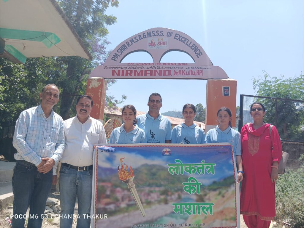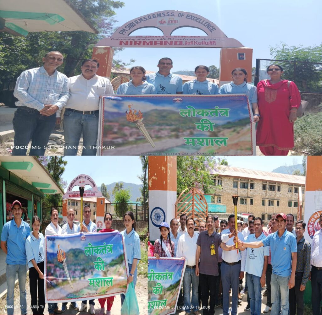 कुल्लू अपडेट,कुल्लू में लोकसभा चुनाव 2024 के अंतर्गत जहाँ जिला भर के विभिन्न स्थानों पर अनेक तरह के जागरूकता कार्यक्रम चलाए जा रहे हैं वहीं लोकतंत्र की मशाल कार्यक्रम का भी जिला भर में मशाल यात्रा निकालकर लोगों को जागरूक करने का कार्य कर रही है। इसका उद्देश्य जिला भर के लोगों को मतदाता जागरूकता का संदेश देना है। इसका शुभारंभ फ्लैग ऑफ करके 13 मई को रथ मैदान कुल्लू से चीफ सेक्रेटरी प्रबोध सक्सेना द्वारा कर रवाना किया गया था । लोकतंत्र की मशाल यात्रा को कुल्लू शहर के मुख्यालय होते हुए चिन्हित स्थानों पर घुमाया गया। इस अवसर पर जिला निर्वाचन अधिकारी एवं उपायुक्त कुल्लू तोरुल एस रवीश,पुलिस अधीक्षक डा गोकुल चंद्र कार्तिकेयन ,सहायक उपायुक्त शशिपाल नेगी एवं जिला स्वीप टीम के सहायक अधिकारी श्याम लाल हांडा, सुनील कुमार, प्रीतम सिंह, मनीष शर्मा और गिरधारी लाल शर्मा आदि उपस्थित रहे।