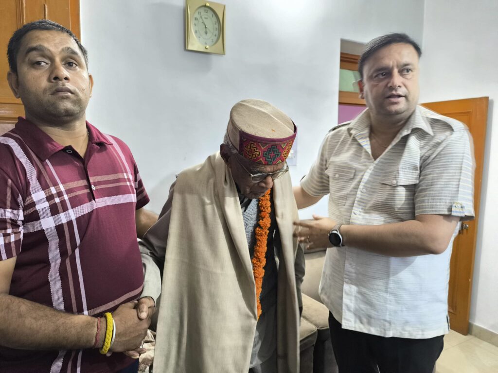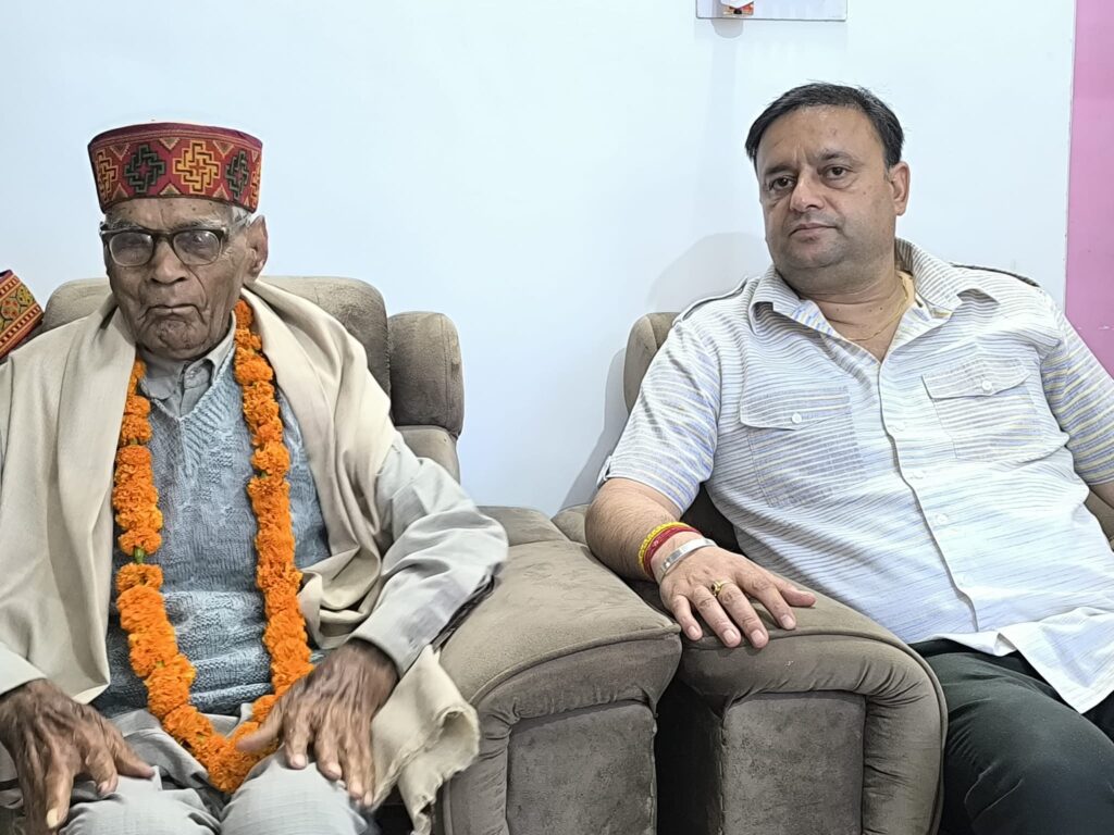 हिमाचल अपडेट ,78वें स्वतंत्रता दिवस के सुअवसर पर कृषि उपज विपणन समिति (APMC), मंडी के चेयरमैन संजीव गुलेरिया ने वयोवृद्ध स्वतंत्रता सेनानी डॉ. राजेंद्र लाल को सम्मानित किया। उन्होंने बताया कि 103 वर्षीय डॉ. राजेंद्र लाल मंडी जिला के लेदा क्षेत्र की ग्राम पंचायत बैरकोट के निवासी हैं। संजीव गुलेरिया ने स्वतंत्रता दिवस के अवसर पर उनके घर पहुंचकर वयोवृद्ध सेनानी को शॉल व टोपी भेंट कर सम्मानित किया और आजादी के आंदोलन में उनके संघर्ष एवं योगदान को स्मरण किया। इस अवसर पर डॉ. राजेंद्र लाल के परिजन भी उपस्थित थे।