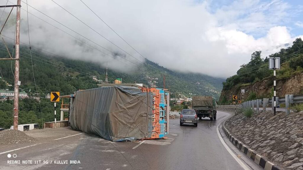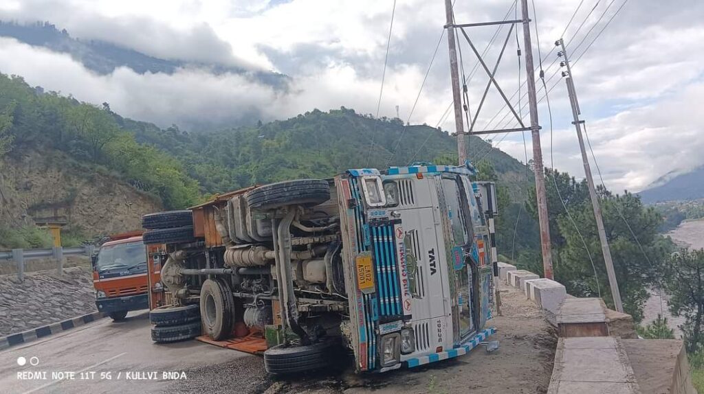 कुल्लू अपडेट,जिला कुल्लू में लगातार हादसों का दौर जारी है लेकिन अब आज सुबह तलोगी गांव से सटे तराकडा में नेशनल हाईवे में सीमेंट से भरा ट्रक पलट गया लेकिन भगवान् का शुक्र है मिली जानकारी के अनुसार इसमें ट्रक चालक सुरक्षित है।