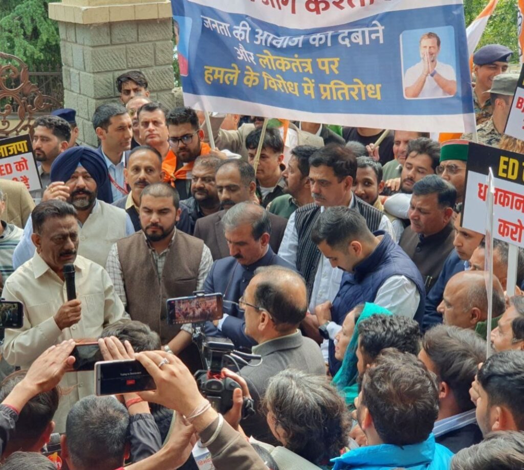 हिमाचल अपडेट, प्रवर्तन निदेशालय (ईडी) ने नेशनल हेराल्ड अखबार से जुड़े एक मनी लॉन्ड्रिंग केस में कांग्रेस सांसद सोनिया गांधी और लोकसभा में विपक्ष के नेता राहुल गांधी के खिलाफ आरोप पत्र दाखिल किया है। विशेष जज विशाल गोग्ने ने 9 अप्रैल को दायर इस चार्जशीट का संज्ञान लिया और मामले की सुनवाई की तारीख 25 अप्रैल तय की है और अब हिमाचल प्रदेश के मुख्यमंत्री सुखविंद्र सिंह सुक्खू ने भाजपा पर हमला बोला है। मुख्यमंत्री सुक्खू ने सोशल मीडिया पर लिखा कि ”ED अब Enforcement Directorate नहीं Intimidation Department बन चुकी है। केंद्र की सत्ता के पास जनता के मुद्दों पर सवालों के जवाब नहीं हैं, इसलिए सवाल पूछने वालों को निशाना बनाया जा रहा है। हमारी नेता, CPP चेयरपर्सन सोनिया गांधी और राहुल गांधी के विरुद्ध की जा रही कार्रवाई इस बात का स्पष्ट प्रमाण है कि भाजपा सरकार विपक्ष की आवाज और सच्चाई से बुरी तरह डरी हुई है। जिस परिवार ने देश की आजादी से लेकर लोकतंत्र की नींव को मजबूत करने के लिए अपना सर्वस्व न्योछावर कर दिया, उसी परिवार को झूठे आरोपों से बदनाम करने की नाकाम कोशिश की जा रही है। हम हर हथकंडे के सामने डटकर खड़े रहेंगे और इस लड़ाई को भी जीतकर रहेंगे। यह देश 140 करोड़ लोगों की आस्था से जुड़े संविधान से चलेगा, तानाशाही के फरमान से नहीं।”शिमला में कांग्रेस ने बुधवार को ईडी कार्यालय के बाहर प्रदर्शन किया। नेशनल हेराल्ड अखबार और एसोसिएटेड जर्नल्स लिमिटेड से जुडे मनी लॉन्ड्रिंग केस में प्रवर्तन निदेशालय द्वारा चार्जशीट दाखिल करने के बाद कांग्रेस नेताओं में रोष है। कांग्रेस के प्रदर्शन में मुख्यमंत्री सुखविंद्र सिंह सुक्खू, कांग्रेस प्रदेश अध्यक्ष प्रतिभा सिंह समेत सभी मंत्रियों, कांग्रेस नेता और शिमला नगर निगम के पार्टी के सभी पार्षदों को उपस्थित रहे। मुख्यमंत्री ने कहा है कि भाजपा विरोध करने वालों पर ईडी की रेड करवा रही है।मुख्यमंत्री सुखविंद्र सिंह सुक्खू ने प्रवर्तन निदेशालय की कार्ययप्रणाली पर सवाल उठाते हुए कहा कि यह एजेंसी केंद्र सरकार के इशारे पर कांग्रेस नेताओं को बेवजह तंग करने का प्रयास कर रही है। उन्होंने कहा कि केन्द्र सरकार राहुल गांधी की सक्रियता से घबरा कर इस तरह के हथकंडे अपना रही है। उन्होंने कहा कि राहुल गांधी और कांग्रेस नेता संसद में जनहित के मुद्दों को उठा रहे हैं। केन्द्र सरकार राजनीतिक मुद्दों से जनता का ध्यान भटकाने के लिए ईडी का दुरूपयोग कर रही है। उन्होंने कहा कि देश को बनाने व संवारने में गांधी परिवार का महत्वपूर्ण योगदान है। राहुल गांधी हमेशा आमजन की लड़ाई लड़ते हैं। केंद्र सरकार के इस तरह के प्रयास उन्हें रोक नहीं सकते।इस दौरान प्रदेश कांग्रेस अध्यक्ष प्रतिभा सिंह ने कहा कि प्रवर्त