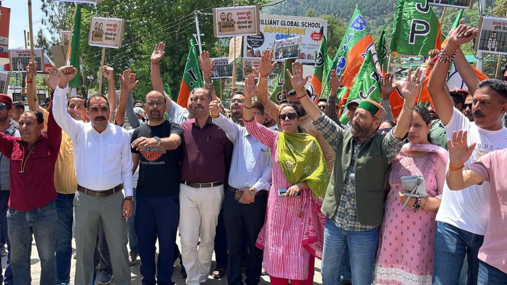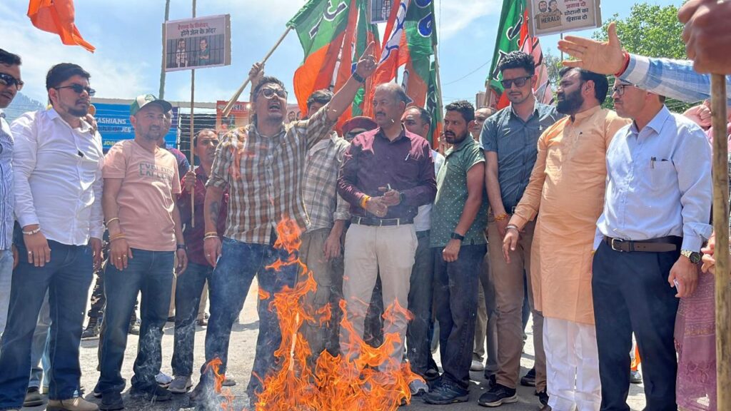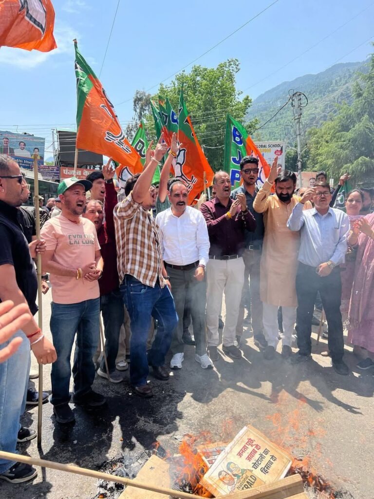 कुल्लू अपडेट,हिमाचल प्रदेश सरकार के द्वारा नेशनल हेराल्ड अखबार को दो करोड़ से अधिक का विज्ञापन देने का मामला इन दिनों प्रदेश में गर्माया हुआ है। तो वहीं भाजपा के द्वारा इस जनता के बीच मुद्दा बनाकर पेश किया जा रहा है। ऐसे में इसी कड़ी में जिला कुल्लू के मुख्यालय ढालपुर में जिला कुल्लू भाजपा युवा मोर्चा के द्वारा एक आक्रोश रैली निकाली गई। इस रैली में भाजयुमो के प्रदेश अध्यक्ष तिलक राज शर्मा विशेष रूप से उपस्थित रहे। इसके अलावा इस प्रदर्शन में बंजार के विधायक सुरेंद्र शौरी, जिला कुल्लू भाजपा अध्यक्ष अमित सूद,भाजपा नेता नरोत्तम ठाकुर,प्रदेश महिला मोर्चा सचिव मनीषा सूद, जिला भाजयुमो अध्यक्ष जनेश ठाकुर भी उपस्थित रहे। इस दौरान भाजयुमो के द्वारा कांग्रेस के नेता राहुल गांधी और सोनिया गांधी का पुतला भी फूंका गया। वहीं पुतला फूकने को लेकर पुलिस और प्रदर्शनकारियों के बीच की झड़प हुई। लेकिन भाजयुमो के कार्यकर्ता पुतला को फूंकने में कामयाब रहे।धरना प्रदर्शन को संबोधित करते हुए भाजयुमो के प्रदेश अध्यक्ष तिलक राज शर्मा ने बताया कि सरकार को आज प्रदेश के लोगों की चिंता नहीं है। बल्कि बाहरी एजेंसियों को करोड़ों रुपए लुटाए जा रहे हैं। नेशनल हेराल्ड मामला पहले भी भाजपा के द्वारा उठाया गया था और करोड़ों रुपए के घोटाले की बात भी जनता के बीच रखी गई थी। मुख्यमंत्री एक और तो आर्थिक विकास का रोना रो रहे हैं तो वहीं दूसरी ओर करोड़ों रुपए विज्ञापन के नाम पर लुटाए जा जा रहे हैं। जिस एजेंसी का हिमाचल प्रदेश से कोई लेना-देना नहीं है। ऐसे में कांग्रेस की सरकार को चाहिए कि वह हिमाचल प्रदेश की आम जनता के विकास के बारे में सोचे न कि बाहरी एजेंसियों को विज्ञापन के नाम पर करोड़ों रुपए की राशि जारी करें।