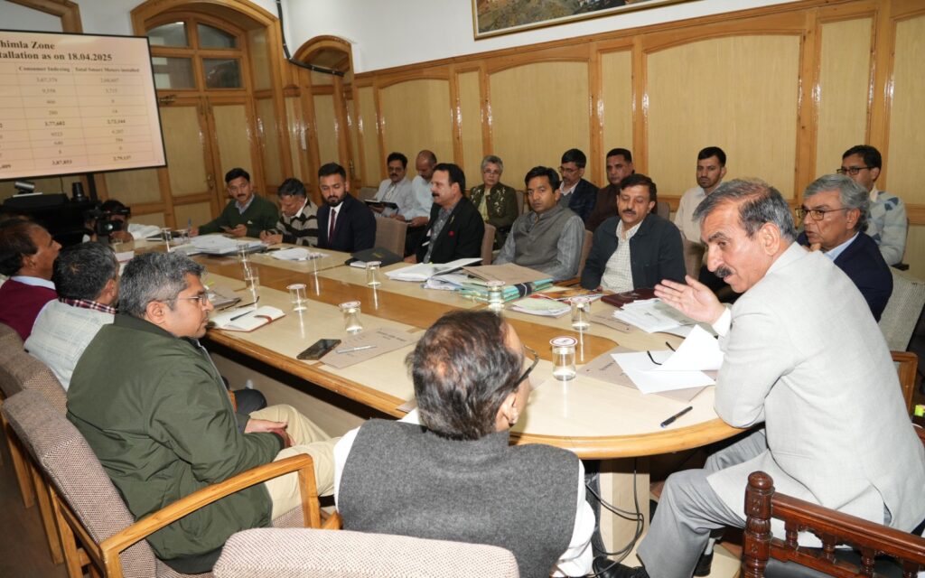 कुल्लू अपडेट,आज मुख्यमंत्री ठाकुर सुखविंद्र सिंह सुक्खू ने एचपीएसईबीएल और ऊर्जा विभाग के अधिकारियों के साथ आयोजित बैठक की अध्यक्षता की।मुख्यमंत्री ने बैठक में हिमाचल प्रदेश राज्य विद्युत बोर्ड लिमिटेड को राज्य में बिजली क्षति का सही आकलन करने और बिजली चोरी रोकने के लिए प्रभावी कदम उठाने के निर्देश दिए।उन्होंने कहा कि प्रदेश सरका एचपीएसईबीएल की कार्यप्रणाली को बेहतर तथा इसे और अधिक सुदृढ़ करने के लिए उद्देश्य से आगामी महीनों में टी-मेट्स और लाइनमैन के 2000 पद भरेगी।साथ ही, मुख्यमंत्री ने 450 मेगावाट क्षमता की शोंग-टोंग जल विद्युत परियोजना की प्रगति की समीक्षा की और अधिकारियों को इस परियोजना को समयबद्ध पूरा करने के निर्देश दिए।इस अवसर पर हिमाचल प्रदेश राज्य विद्युत बोर्ड लिमिटेड और ऊर्जा विभाग के वरिष्ठ अधिकारी भी मौजूद रहे।