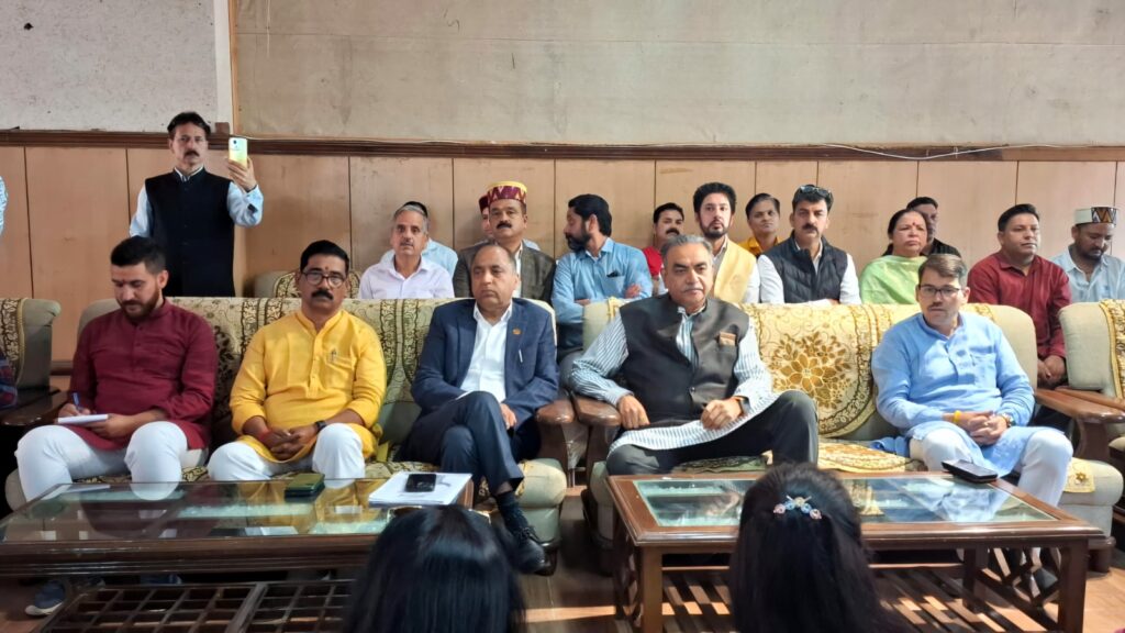 इस अवसर पर विपक्ष के नेता एवं पूर्व मुख्यमंत्री जयराम ठाकुर , प्रदेश संगठन महामंत्री सिद्धार्थन , पूर्व मंत्री एवं भाजपा प्रदेश उपाध्यक्ष गोविंद ठाकुर, सुरेंद्र शौरी, विधायक लोकिन्दर कुमार, जिला अध्यक्ष अमित सूद, नरोत्तम ठाकुर, गंगा सिंह, अखिलेश कपूर, दानविंदर सिंह, भीमसेन शर्मा, धनेश्वरी ठाकुर, राहुल सोलंकी, आदित्य विक्रम सिंह सहित अन्य वरिष्ठ पार्टीजन उपस्थित रहे।