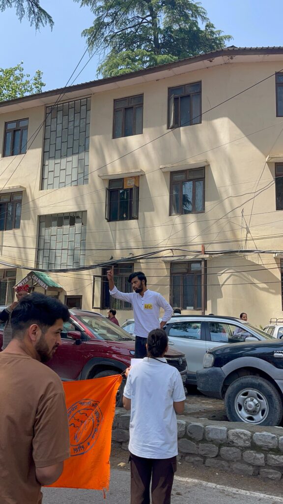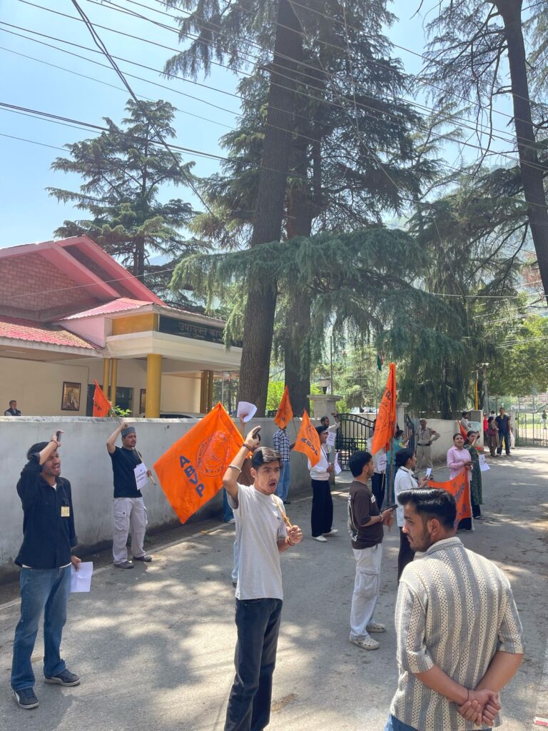 कुल्लू अपडेट,आज अखिल भारतीय विद्यार्थी परिषद जिला कुल्लू द्वारा जम्मू कश्मीर के पहलगाम में आतंकवादी हमले के खिलाफ रोष व्यक्त किया गया।अखिल भारतीय विद्यार्थी परिषद जिला कुल्लू द्वारा उपायुक्त कार्यालय के बाहर विशाल धरना प्रदर्शन किया गया। हाल ही में जम्मू कश्मीर के पहलगाम में हुए आतंकी हमले के खिलाफ विद्यार्थी परिषद ने रोष व्यक्त किया।अभाविप जिला संयोजक सारांश ने बताया 27 से ज्यादा लोगों पर लगातार गोलियां बरसाई गई।