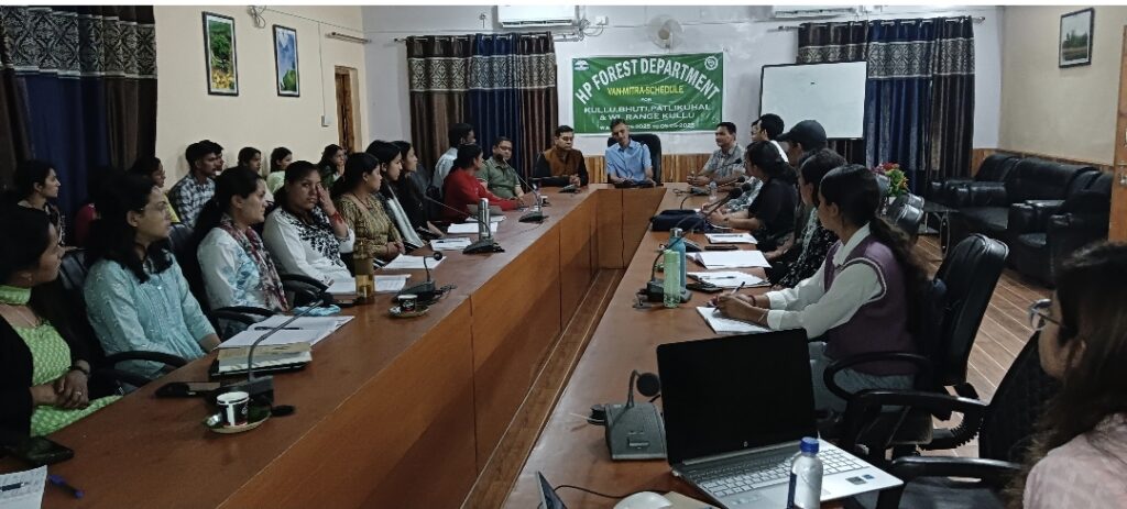 कुल्लू अपडेट,वन मंडल कुल्लू के अंतर्गत भुट्टी कुल्लू एवं पतलीकूहल वन परिक्षत्र तथा वन्यप्राणी मंडल कुल्लू के वन्यप्राणी परिक्षेत्र कुल्लू में नियुक्त वन मित्रों को 1 मई से 5 मई 2025 तक विशेष प्राशिक्षण प्रदान किया जा रहा है। इस प्राशिक्षण का शुभारंभ अरण्यपाल वन वृत्त कुल्लू संदीप शर्मा द्वारा किया गया |