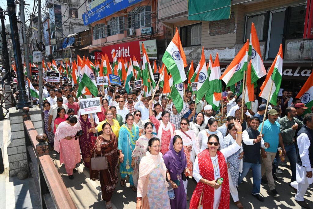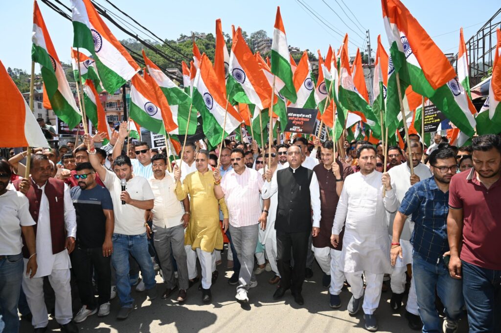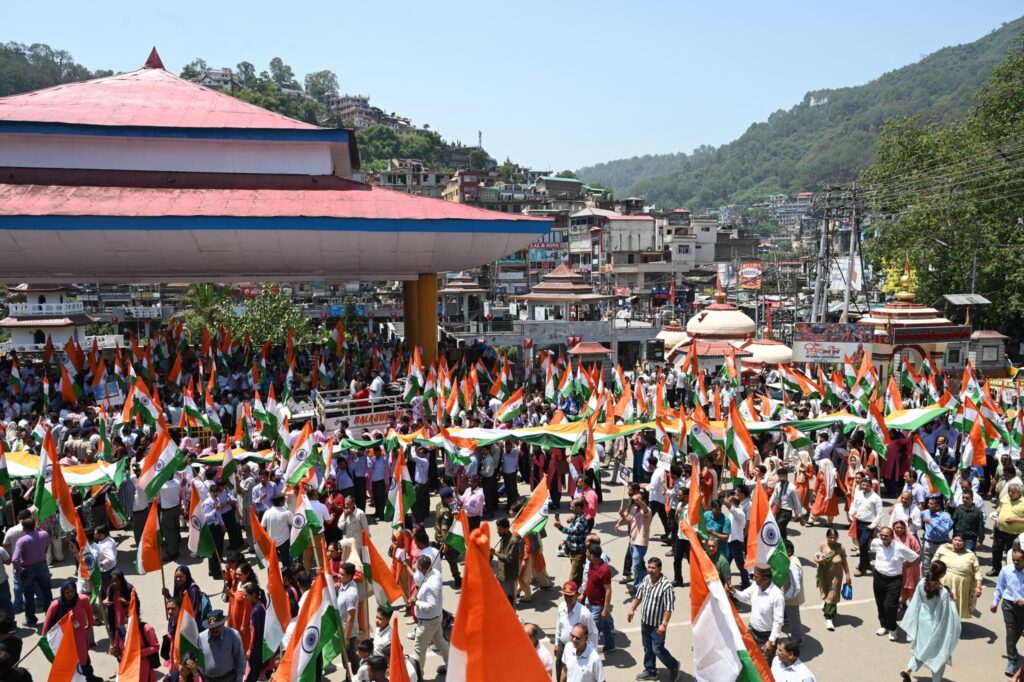 कुल्लू अपडेट,भाजपा ने आज मंडी शहर की सड़कों में तिरंगे के साथ शौर्य, सम्मान, शहादत एवं देशभक्ति की अद्भुत गूंज रही।भारतीय सेनाओं की वीरता और ऑपरेशन सिंदूर की ऐतिहासिक जीत को समर्पित “तिरंगा यात्रा“ निकाली ।इस तिरंगा यात्रा में भाग लेकर भव्य बनाने हेतु पार्टी के सभी साथियों और देवतुल्य जनता का हार्दिक अभिनंदन किया।, यह यात्रा पड्डल मैदान से शुरू होकर शहर के मुख्य बाजार तक गई। “भारतीय सेना जिंदाबाद” और “पाकिस्तान मुर्दाबाद” जैसे नारे लोगों में जोश भर रहे थे। इस मौके पर नेता प्रतिपक्ष एवं पूर्व मुख्यमंत्री जयराम ठाकुर सहित भाजपा विधायक, पूर्व विधायक, पार्टी के वरिष्ठ पदाधिकारी एवं सैंकड़ों कार्यकर्ता भी विशेष रूप से उपस्थित रहे। इस यात्रा का उद्देश्य देश की सेना के प्रति सम्मान और एकजुटता प्रदर्शित करना था।