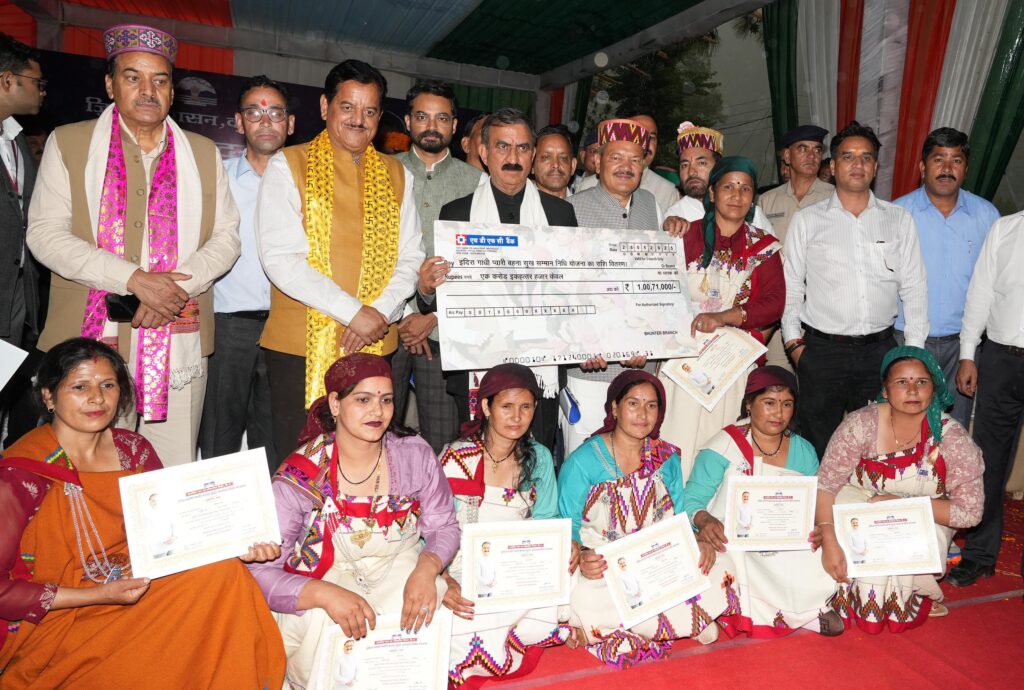 कुल्लू अपडेट,मुख्यमंत्री ठाकुर सुखविंद्र सिंह सुक्खू ने आज कुल्लू जिले के देहूरी में बंजार विकास खण्ड की 18 वर्ष से 59 वर्ष आयु वर्ग की 2238 पात्र महिलाओं को इंदिरा गांधी प्यारी बहना सुख सम्मान निधि अप्रैल 2025 से जून 2025 तक (तीन महीने) 4500 रूपये प्रति लाभार्थी की दर से बचत खातों में 1 करोड़ 71 हजार की राशि हस्तांतरित कर इस योजना का शुभारम्भ किया। उन्होंने कहा कि वर्तमान प्रदेश सरकार पात्र महिलाओं को चरणबद्ध ढंग से 1500 रूपये प्रतिमाह प्रदान कर रहे है। उन्होंने कहा कि हमारी सरकार राज्य की सम्पदा के लाभों से वंचित सभी वर्गों को लाभ पहुंचाने के लिए कृतसंकल्प है।