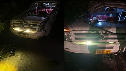 घियागी में ट्रैवलर गाड़ी दुर्घटनाग्रस्त