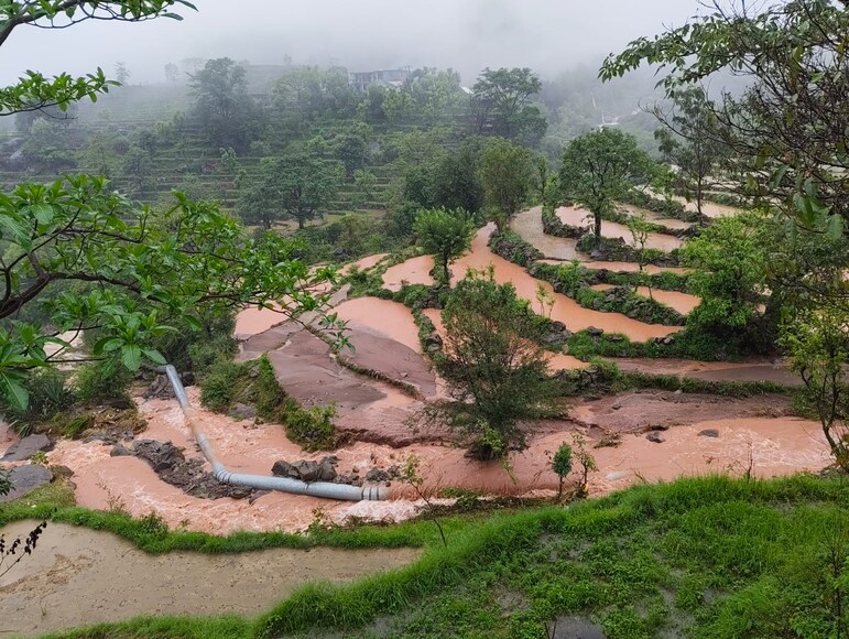 मंडी के धर्मपुर की उपतहसील मंडप के जंदवाल गांव में खेतों का हाल.