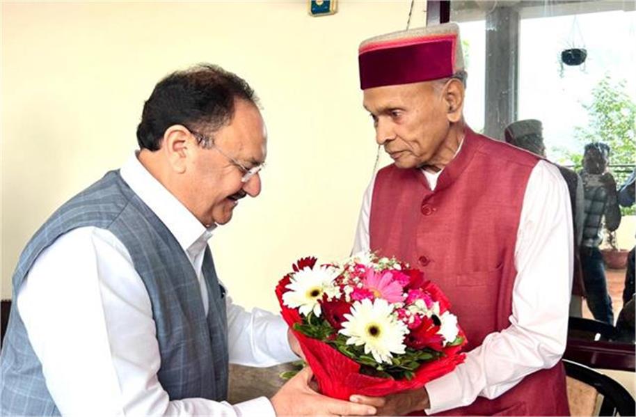 हमीरपुर भारतीय जनता पार्टी के राष्ट्रीय अध्यक्ष और केंद्रीय स्वास्थ्य मंत्री जगत प्रकाश नड्डा शुक्रवार को हमीरपुर जिला पहुंचे, जहां उन्हाेंने समीरपुर स्थित धूमल निवास जाकर पूर्व मुख्यमंत्री प्रो. प्रेम कुमार धूमल से शिष्टाचार भेंट की। नड्डा की इस मुलाकात को संगठनात्मक दृष्टि से महत्वपूर्ण माना जा रहा है, खासकर ऐसे समय में जब पार्टी आगामी विधानसभा चुनावों की तैयारियों में जुटी है।