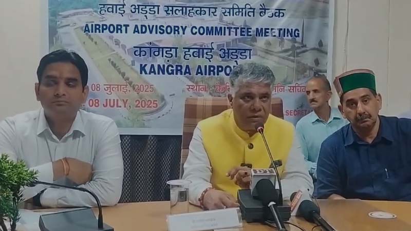 धर्मशाला। गगल एयरपोर्ट हवाई अड्डा सलाहकार समिति की बैठक कांगड़ा चंबा के सांसद डॉ राजीव भारद्वाज की अध्यक्षता में धर्मशाला सचिवालय में आयोजित की गई। इस बैठक में शाहपुर के विधायक व उप मुख्य सचेतक केवल सिंह पठानिया, डीसी कांगड़ा हेमराज बैरवा सहित जिला कांगड़ा के सभी प्रशासनिक अधिकारी, गगल एयरपोर्ट अथॉरिटी के अधिकारियों सहित समिति के अन्य सदस्य भी मौजूद रहे। इस दौरान गगल एयरपोर्ट के विस्तारित करण सहित विकास के लिए विभिन्न विषयों पर मंथन किया गया। कांगड़ा में आने वाले पर्यटकों को देखते हुए अब महाराष्ट्र मुंबई व अहमदाबाद से डायरेक्ट फ्लाइट शुरू किए जाने को लेकर भी सहमति बनी है। इसके साथ ही धर्मशाला कांगड़ा एयरपोर्ट के नाम से गगल एयरपोर्ट को जाने के लिए भी प्रस्ताव प्रदेश सरकार को भेजा गया है।