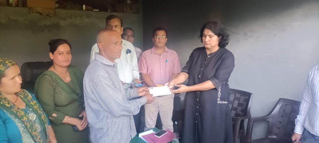कुल्लू अपडेट,उपायुक्त, तोरुल एस. रवीश ने कुल्लू के सैंज में 25 जून को जीवा नाला में अचानक बाढ़ से गाँव शरण विहाली के पूर्ण रूप से प्रभावित 6 परिवारों को जिला रेडक्रॉस सोसाइटी से 50-50 हजार के चेक वितरित किये।