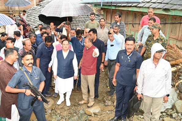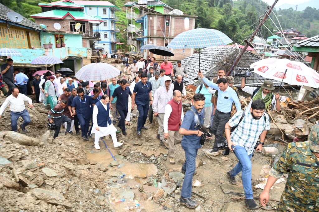 हिमाचल अपडेट,भारतीय जनता पार्टी के राष्ट्रीय अध्यक्ष एवं केंद्रीय स्वास्थ्य मंत्री आदरणीय जगत प्रकाश नड्डा, हिमाचल प्रदेश के प्रदेश अध्यक्ष डॉ राजीव बिंदल के साथ आपदाग्रस्त थुनाग क्षेत्र का दौरा किया और प्रभावित परिवारों से मिलकर सांत्वना दी वही पूर्व सीएम जयराम ठाकुर ने आपदा से हुए नुकसान से अवगत करवाया और वही जयराम ठाकुर कहा कि इस त्रासदी से थुनाग बाजार पूरी तरह से तहस नहस हो गया। कई लोगों को अपनी जान गंवानी पड़ी।