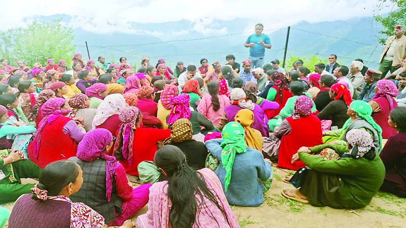 कुल्लू के धारठ में पेड़ काटने के खिलाफ लोगों का जोरदार प्रदर्शन, रोक दिया काम