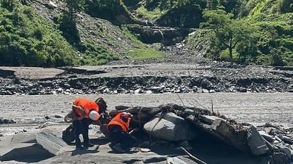 सराज में आई आपदा के बाद लापता लोगों की तलाश में जुटी एनडीआरएफ टीम।