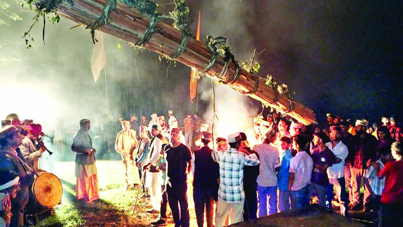 कुल्लू अपडेट धर्म एवं आस्था के पर्व होम उत्सव में सैंज के कनौन गांव में देव परंपरा की अनूठी मिसाल देखने को मिली। देवता ब्रह्मा व देत्री भगवती के होम मेले में देव हारियानों द्वारा भारी बारिश के बीच लगभग 60 फुट लंबी लकड़ी की जलती मशाल को कंधे पर उठाकर देव कार्य विधि अनुसार गांव की परिक्रमा कर देव कार्य को निभाया। इस परम्परा को देखने के लिए कनौन में देवी भगवती व बह्मा के मंदिर में सैंकड़ों श्रद्धालुओं ने हाजिरी भरी। मान्यता है कि इस दिन देवी भगवती प्राकृतिक आपदा को टालने के लिए देवी महामाई ज्वाला का रूप धारण कर सभी की मनोकामना पूरी करती है। हर वर्ष आषाढ़ महीने में देवी भगवती लक्ष्मी अपने क्षेत्र की रक्षा के लिए होम जगराते का आयोजन करती है। देवी के गुर रोशन लाल, झावे राम ने बताया कि क्षेत्र में घटने वाली प्राकृतिक आपदा और भूत पिशाच की नजरों से बचने के लिए इस पर्व का आयोजन किया जाता है। उन्होंने बताया कि इस पर्व में मशाल जलाने का कारण है कि देवी भगवती इस मशाल में ज्वाला रूप धारण कर उक्त परिस्थितियों से निजात दिलाती है।