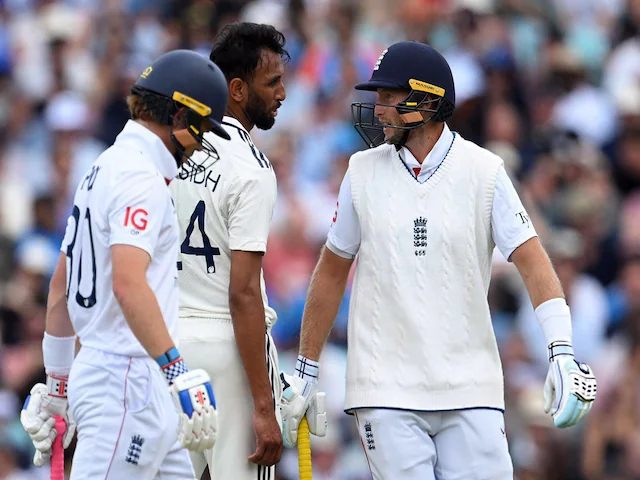 IND vs ENG भारत और इंग्लैंड के बीच खेले जा रहे पांचवें टेस्ट मैच में मैदान पर कुछ गर्मागर्म पल देखने को मिले जब भारतीय तेज गेंदबाज़ प्रसिद्ध कृष्णा और इंग्लैंड के अनुभवी बल्लेबाज़ जो रूट के बीच नोंकझोंक हो गई। अब इस पर खुद प्रसिद्ध कृष्णा ने सफाई दी है कि यह सब पहले से तय रणनीति का हिस्सा था। उन्होंने कहा कि रूट को गुस्सा दिलाने की कोशिश जानबूझकर की गई थी ताकि उनके खेलने की लय को तोड़ा जा सके।