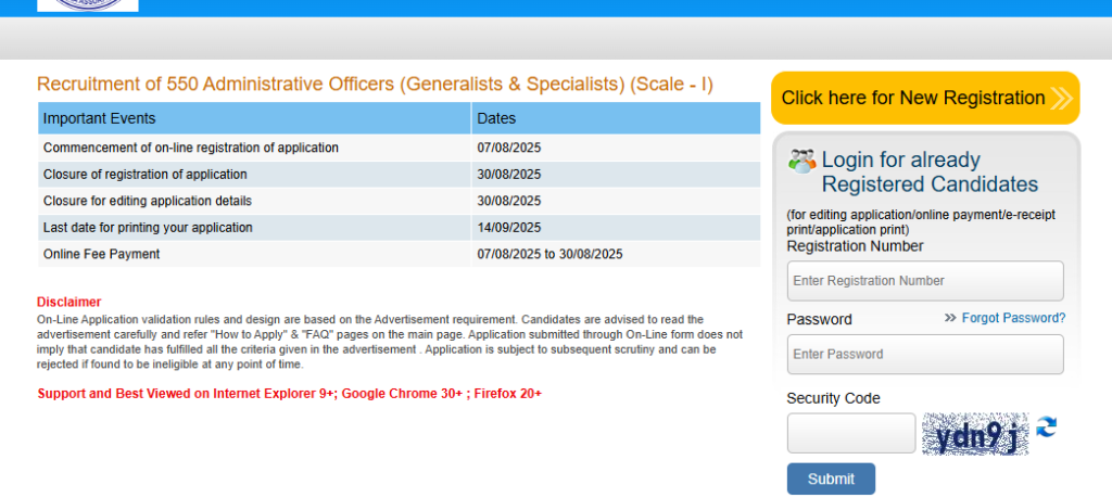 - “Click here for New Registration” पर जाकर नया रजिस्ट्रेशन करें।