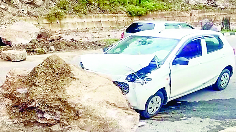 एनएच-03 पर नगवाईं के समीप भूस्खलन; कार की अगली साइड पर गिरा पत्थर, सवारियां बाल-बाल बचीं ,एनएच-03 पर नगवाईं के समीप जोगणी माता मंदिर के पास गुरुवार सुबह बड़ा हादसा टल गया, जब अचानक भूस्खलन के कारण एक विशालकाय चट्टान चलती कार पर गिर पड़ी। गनीमत यह रही कि पत्थर कार की अगली साइड से टकराया, जिससे कार में सवार सभी लोग सुरक्षित बच गए।