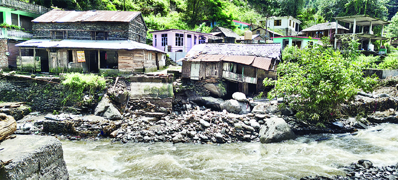 जिला कुल्लू के महाराजा कोठी क्षेत्र में दोहरा नाला सोमवार को बादल फटने से उफान पर आ गया, जिससे इलाके में भारी तबाही हुई। बाढ़ के मलबे ने खेतों और घरों में घुसकर लोगों का जीवन अस्त-व्यस्त कर दिया। नाले के किनारे बनी चार दुकानें पूरी तरह से तबाह हो गईं। इनमें राशन की दुकान, चिकन की दुकान, एक चाइनीज स्टॉल और शराब का ठेका शामिल है।